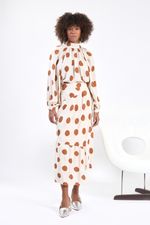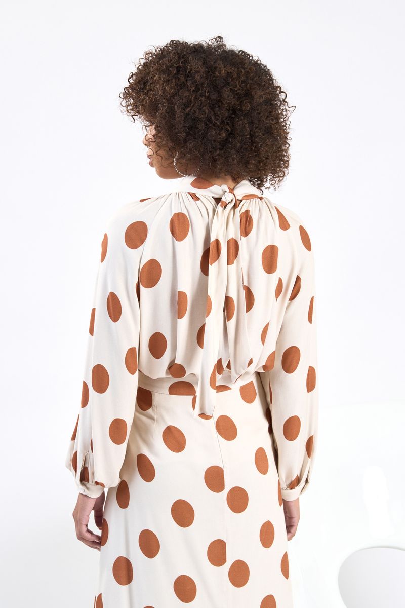 A blusa manga fofa é um modelo marcante, com um shape elegante e clássico. confeccionada em crepe leve à base de viscose. a peça possui gola alta, mangas longas bufantes com detalhes de pregas na altura do decote, recorte frontal e posterior e shape solto. estampa exclusiva leeloo.