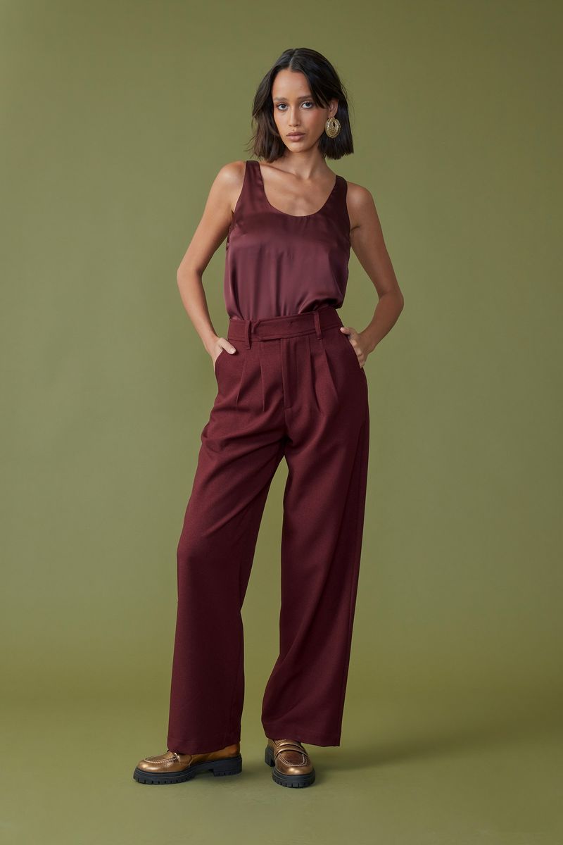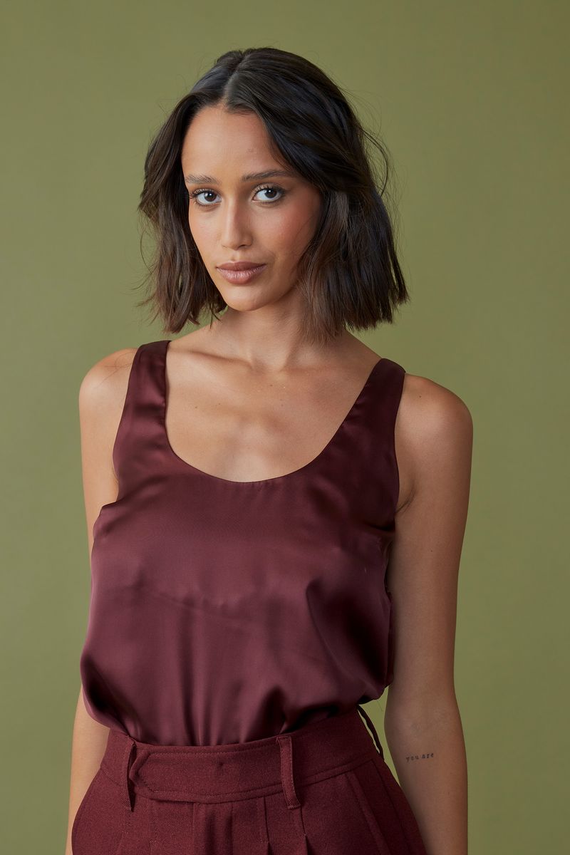 Blusa em Cetim com toque sofisticado e caimento leve, perfeita para composições versáteis do dia à noite. O modelo conta com decote redondo, alças médias e comprimento clássico. A barra em formato evasê garante movimento sutil e um visual delicadamente fluido.