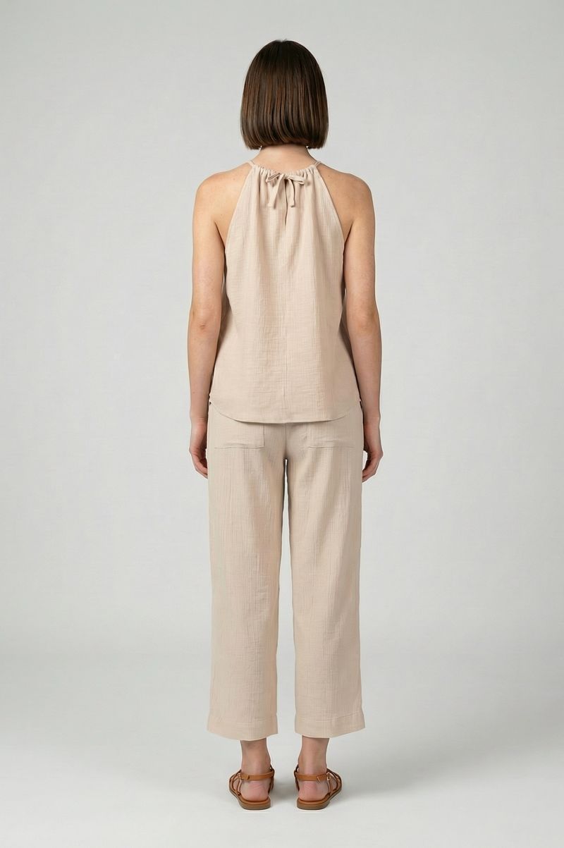 Blusa Pala Franzida Búzios traz tecido ultraleve com textura sutil e transparência suave, finalizado com forro para vestir com segurança. O decote franzido com alças finas reguláveis em rolote permite ajustar do jeito que você gosta, enquanto a abertura nas costas com amarração em laço adiciona charme discreto. Perfeita para coordenar com a