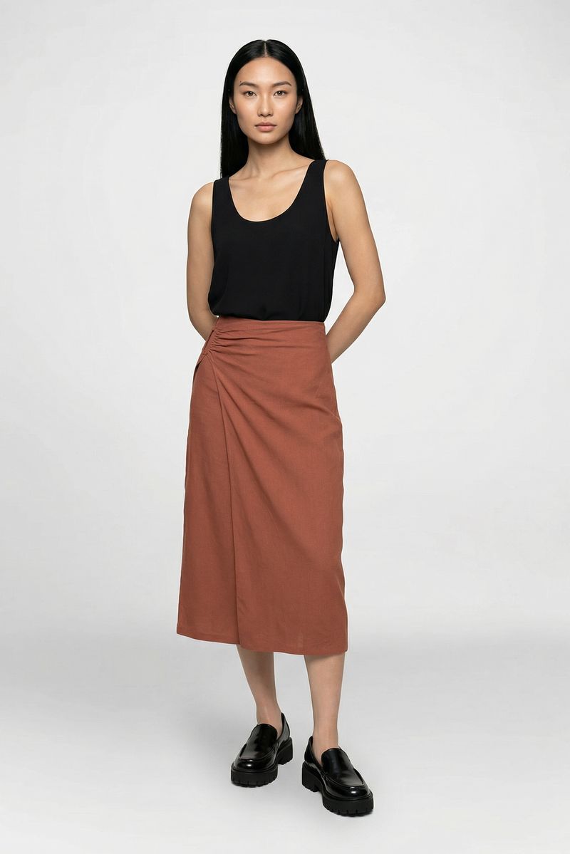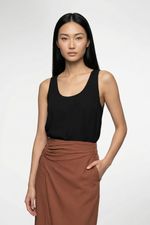 Regata Silky Nadador Atins tem caimento soltinho que acompanha o corpo com leveza. O comprimento um pouco abaixo da cintura deixa o look moderno e fácil de combinar, enquanto as aberturas laterais trazem movimento. Nas costas, a fenda com botão adiciona um detalhe sutil e feminino. Forrada em dupla camada, é perfeita para usar sozinha ou como base para sobreposições.