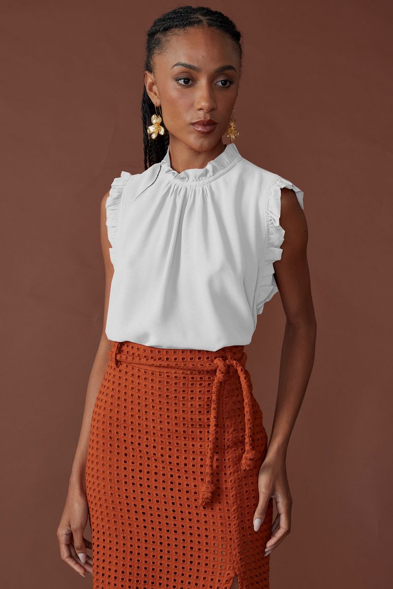 Blusa sense gola e cava babadinhos