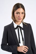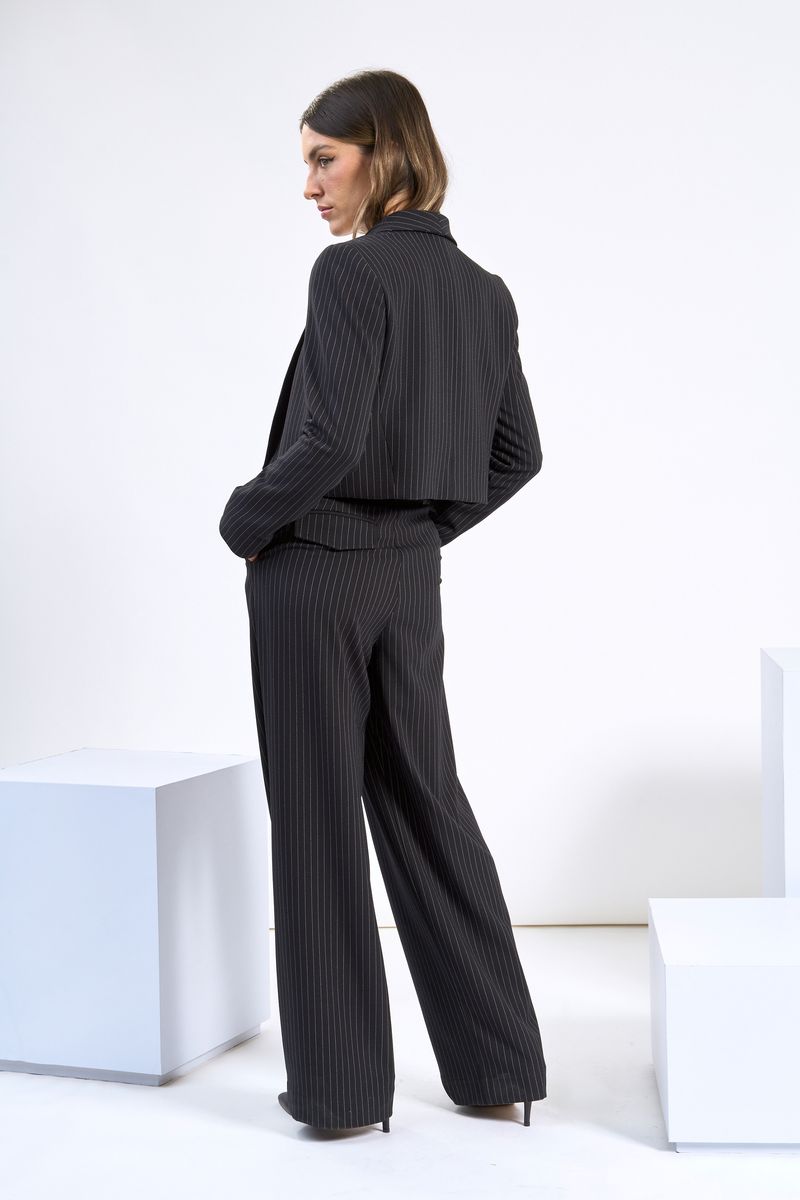 O spencer smocking risca de giz tem um corte de alfaiataria impecável. confeccionado em tecido misto com toque macio e ótimo caimento, proporcionando conforto e fluidez. todo forrado por dentro, estruturado e aberto na frente. modelagem smocking, com gola xale e comprimento cropped. detalhe de fendas curtas nos punhos.