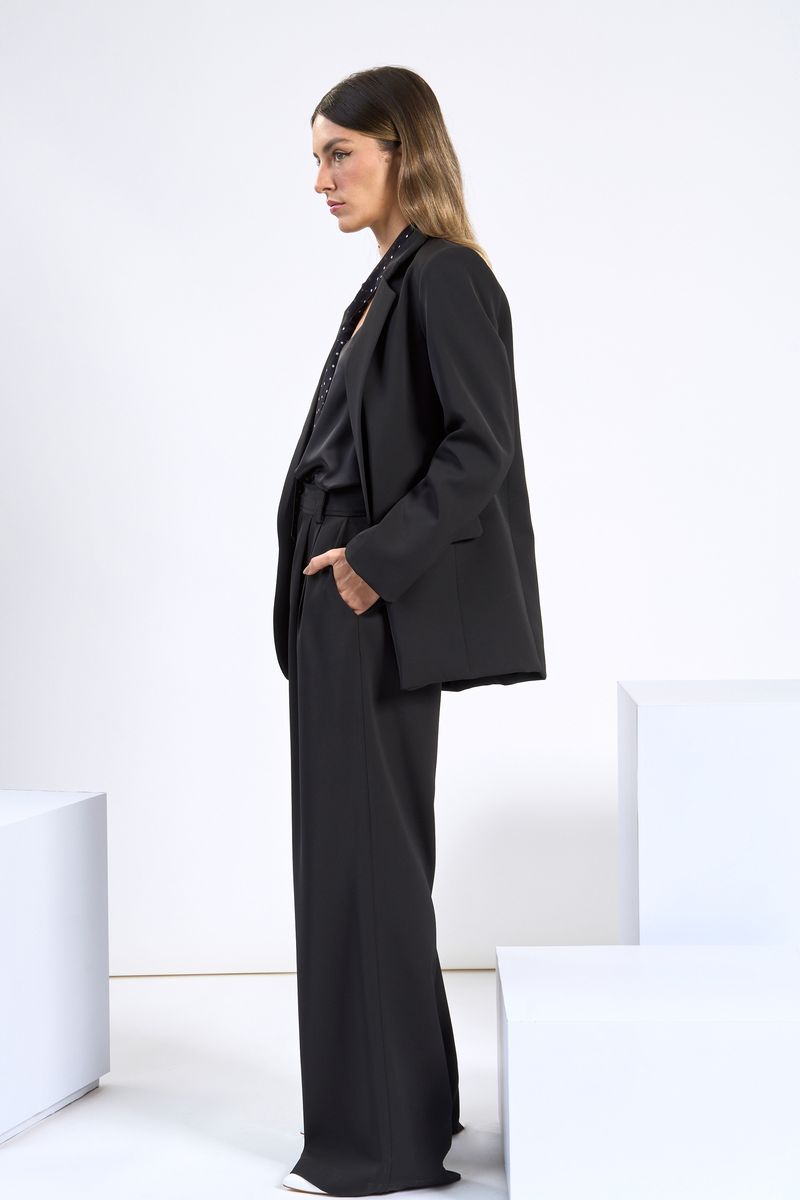 O blazer lapela tem um corte de alfaiataria impecável, confeccionado em tecido com toque macio e caimento reto, proporcionando conforto e fluidez. possui modelagem mais ampla e estruturada, com lapela chanfrada, aplicação de ombreiras, mangas longas e lapelas frontais decorativas, todo forrado por dentro e com comprimento alongado.