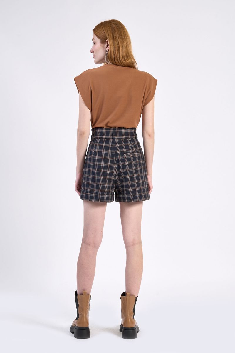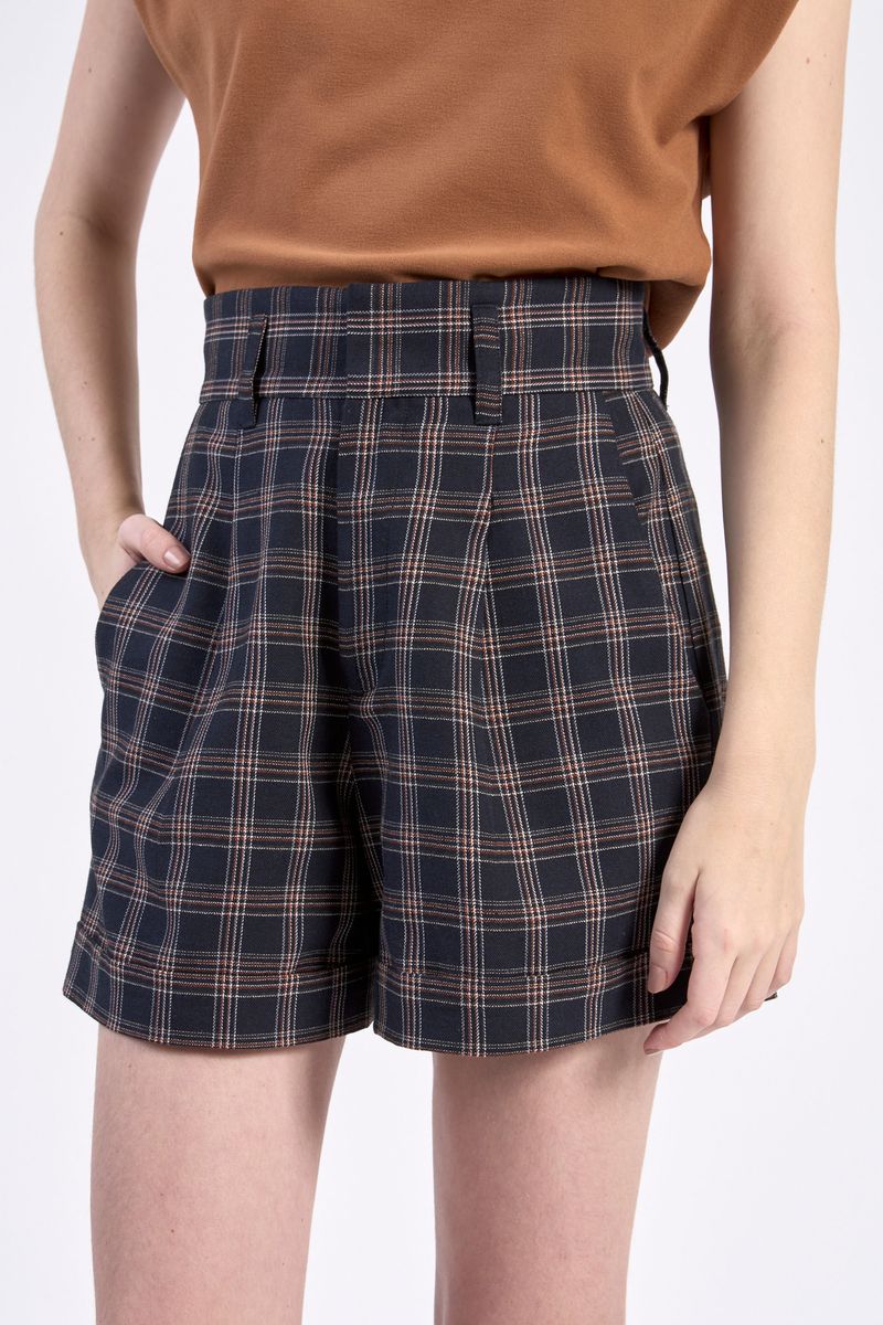 O short cós alto é uma ótima aposta para compor um look despojado, com um visual de padronagem xadrez. é confeccionado em um tecido com superfície felpada e toque extremamente macio. a peça possui cintura alta, cós anatômico reto com passantes, bolsos frontais modelo faca, pregas superiores, shape solto ao corpo e fechamento frontal por zíper e colchete.